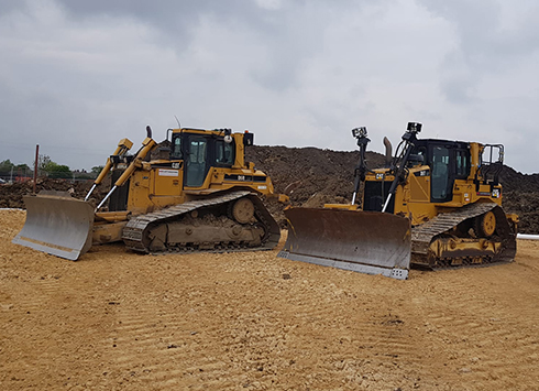 The D7E can load itself, haul material, and spread and level or stockpile material on its own with one operator, (which makes it ideal for topsoil strips and cut and fill operations) no requirement for an excavator, dumptruck etc, which makes it a very efficient piece of plant.